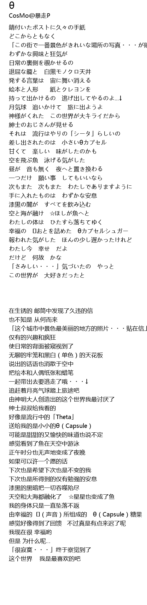| [03:49.419] | 由幸福的 ♬(声音)所组成的 θ(Capsule)糖果 |