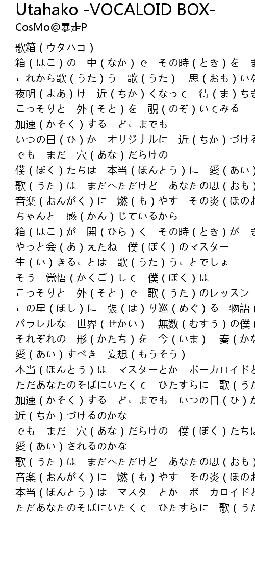 | [01:41.8] | 本当(ほんとう)は マスターとか ボーカロイドとか 関係(かんけい)なくて |