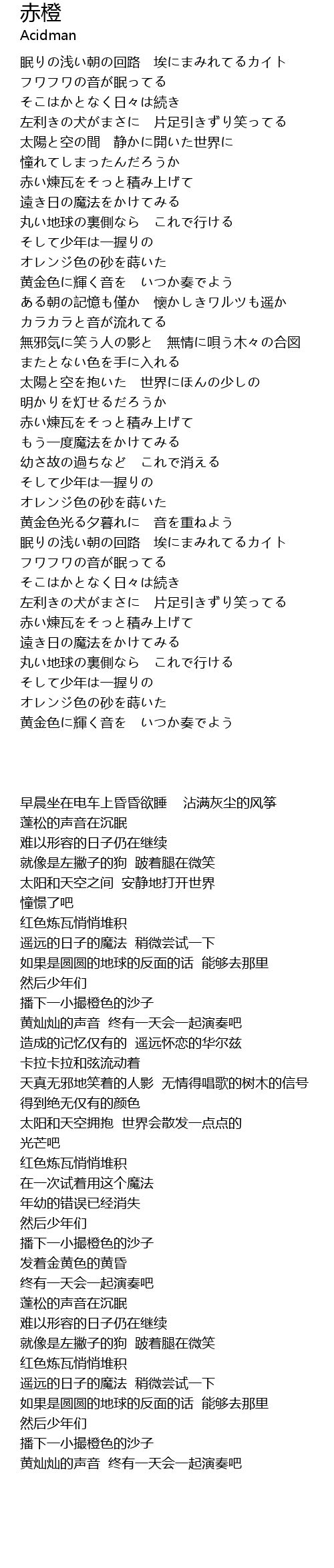 | 歌曲 | 赤橙 |