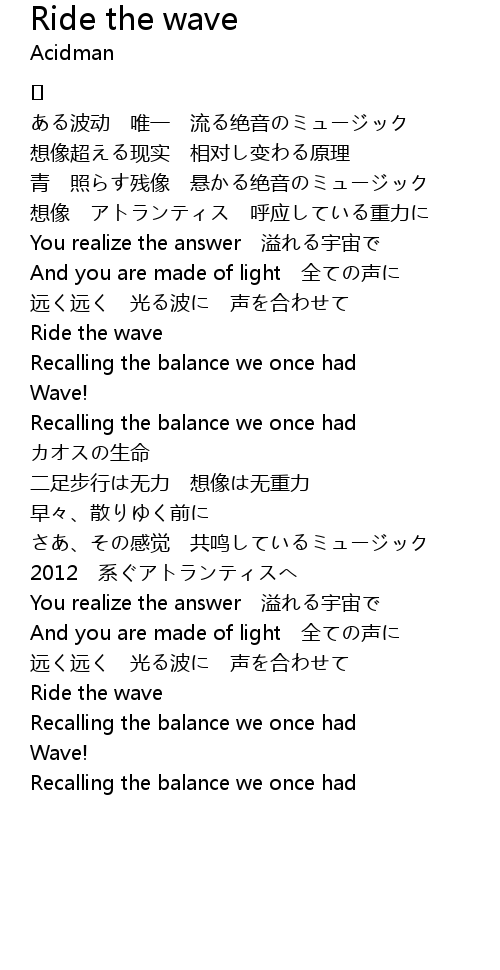 | 歌曲 | Ride the wave |