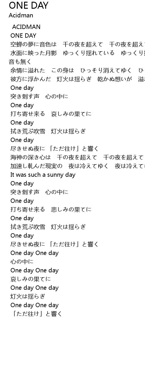 | 余情に溢れた この身は ひっそり消えてゆく ひっそり消えてゆく 此処で | |