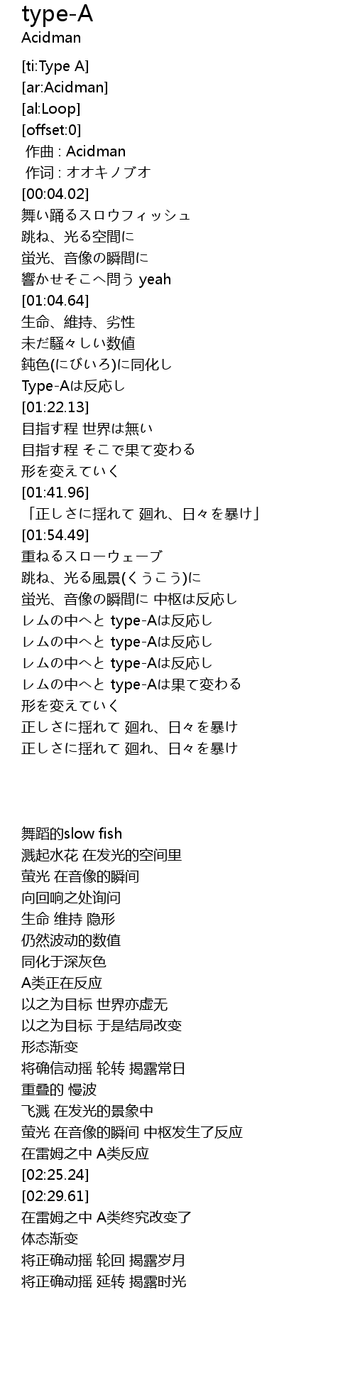 | [00:00.00] | zuò qǔ : Acidman |