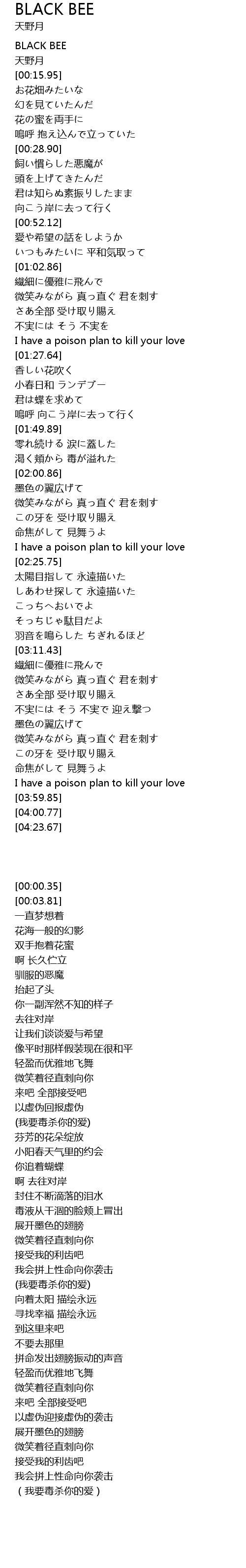 | [03:55.83] | I have a poison plan to kill your love |