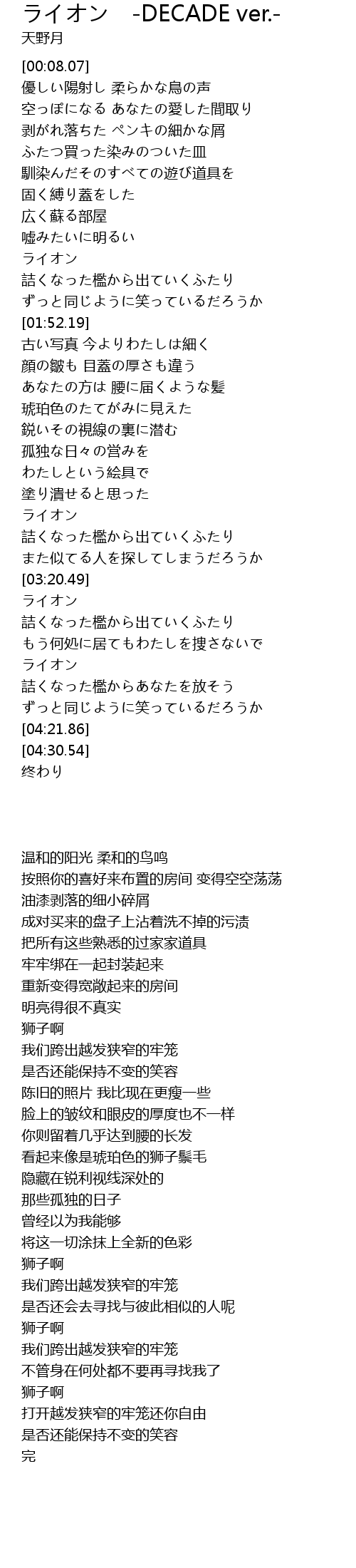 | [02:30.62] | 琥珀色のたてがみに見えた |