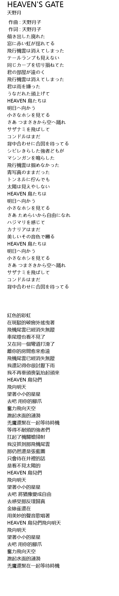HEAVEN 鳥兒們飛向明天 |