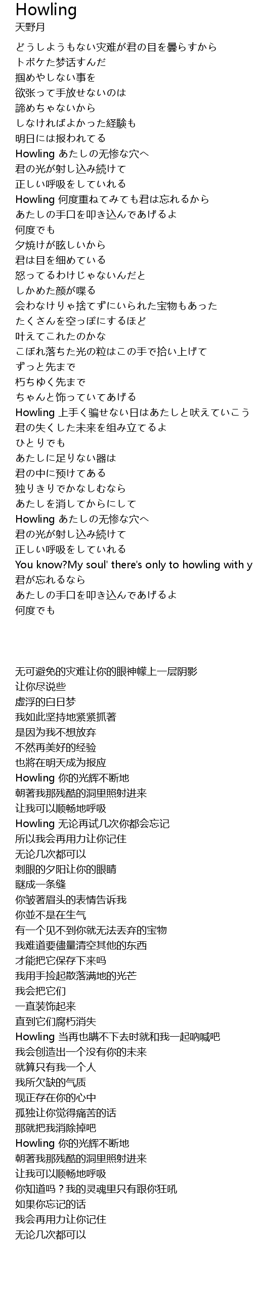 | [03:10.750] | Howling 当再也瞒不下去时就和我一起吶喊吧 |