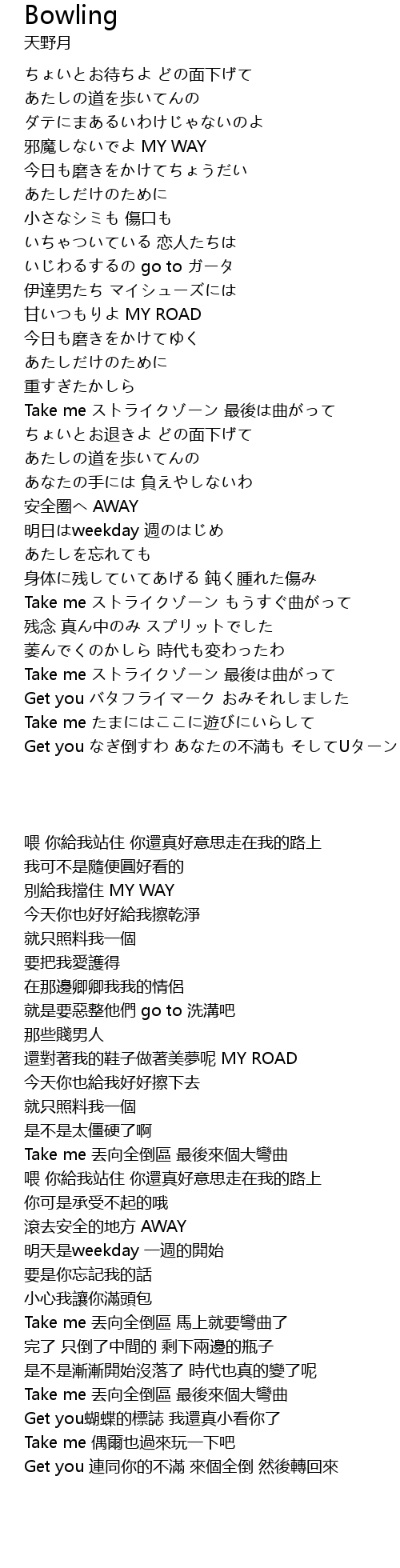 | [02:47.350] | Take me 丟向全倒區 最後來個大彎曲 |