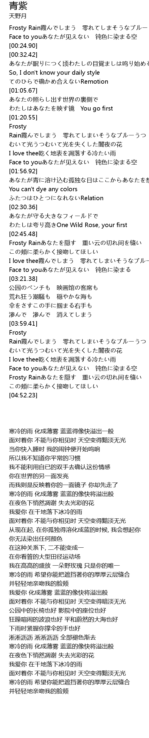 | [00:02.28] | Frosty Rain霞んでしまう 零れてしまそうなブルー |