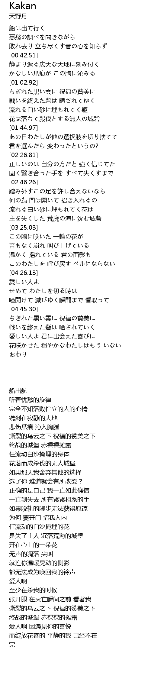 | [05:17.54] | 花咲かせた 穏やかなわたしはもう いない |