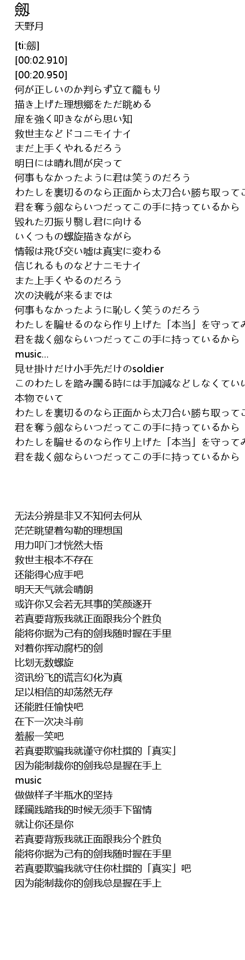| [04:11.950] | 君を裁く劔ならいつだってこの手に持っているから |