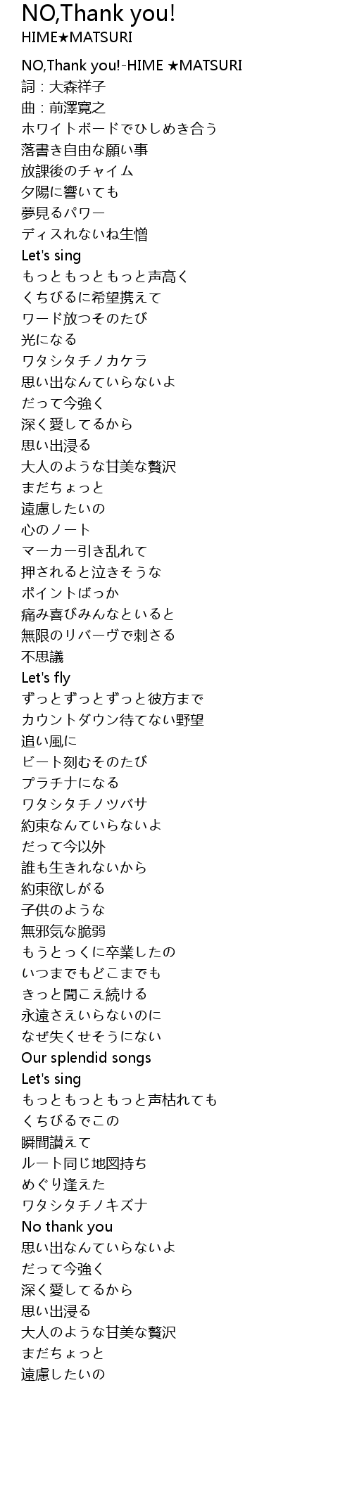 | [00:00.331] | NO,Thank you!-HIME ★MATSURI |