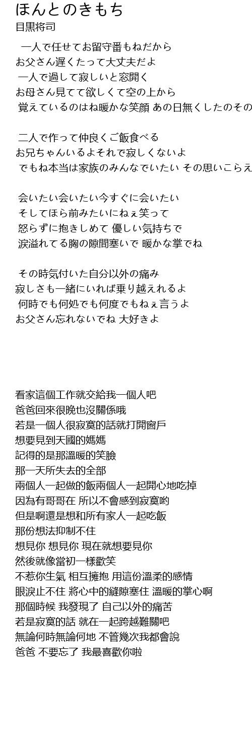 | [01:38.88] | 但是啊還是想和所有家人一起吃飯 |