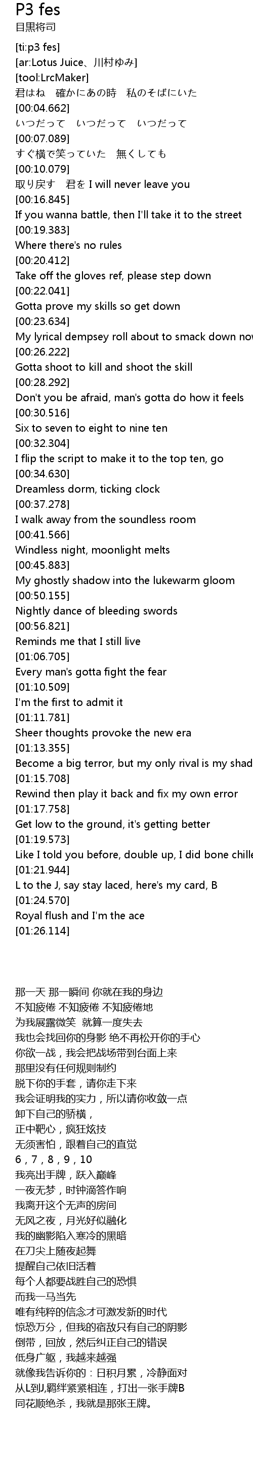 | [01:13.575] | Become a big terror, but my only rival is my shadow |