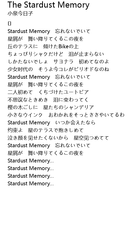 | 歌曲 | The Stardust Memory |