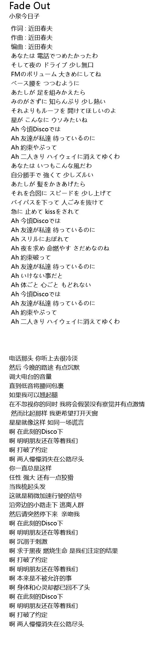 | [02:22.650] | Ah 二人きり ハイウェイに消えてゆくわ |