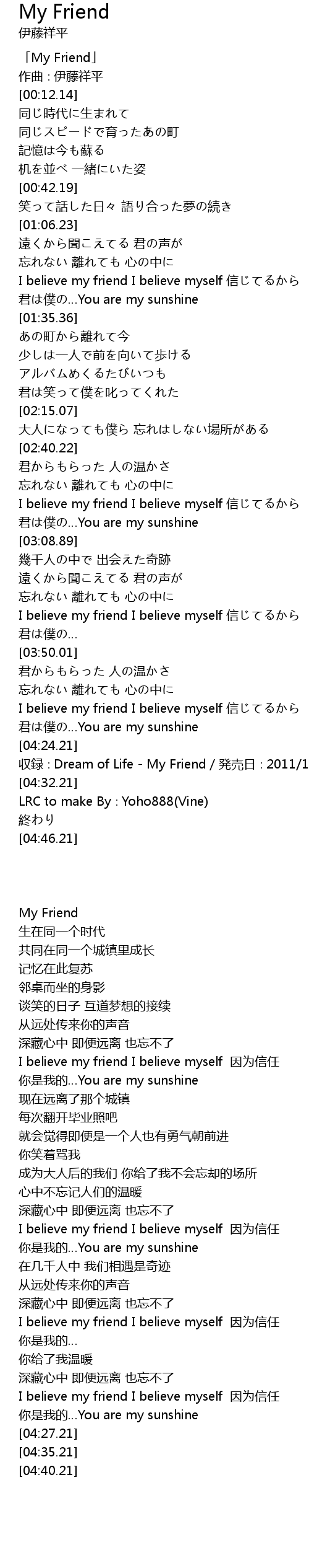 | [04:27.21] | shōu lù Dream of Life My Friend fā mài rì 2011 12 07 |