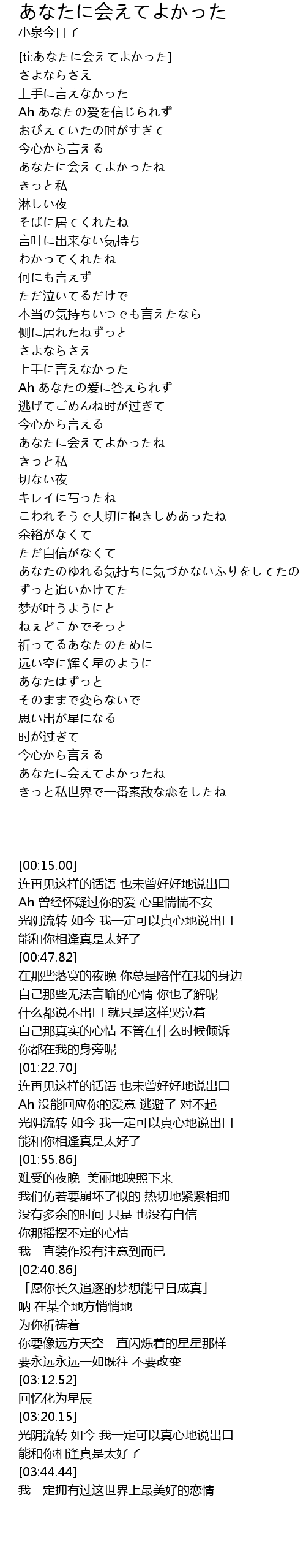 | [03:41.685] | きっと私世界で一番素敌な恋をしたね |
