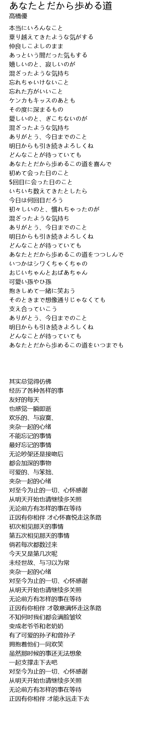 あなたとだから歩めるこの道をいつまでも |
