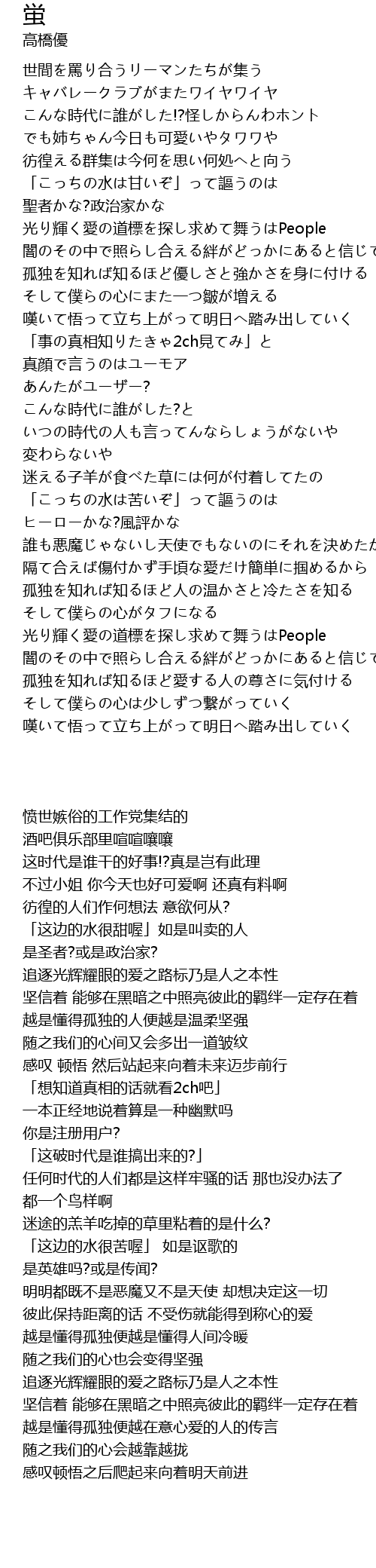 | [00:39.790] | 光り輝く愛の道標を探し求めて舞うはPeople |