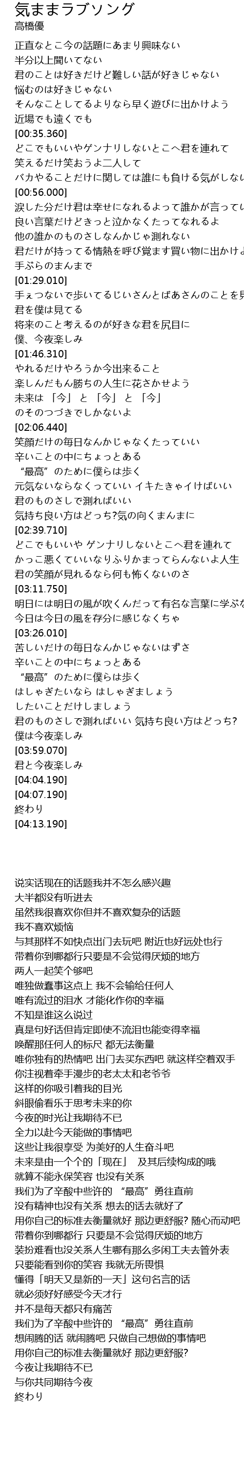 | [03:40.300] | はしゃぎたいなら はしゃぎましょう したいことだけしましょう |