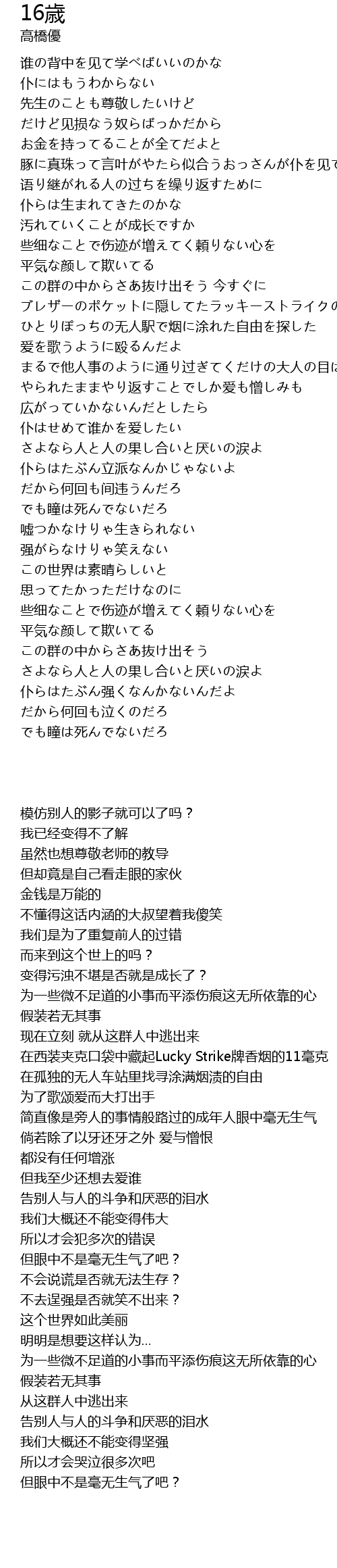 | 歌曲 | 16歳 |