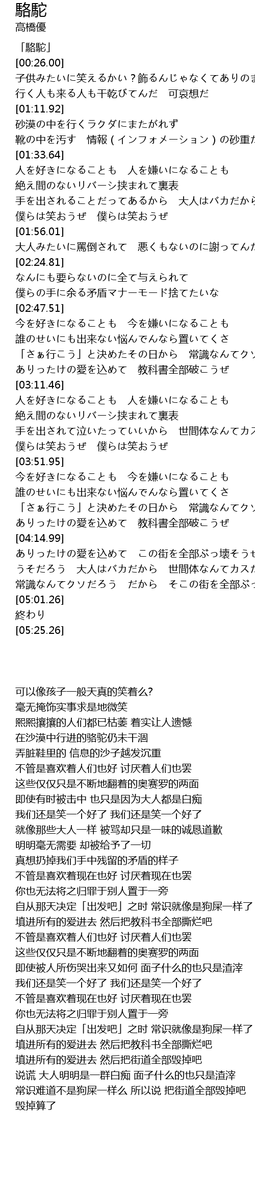 | [00:06.50] | 「駱駝」 |