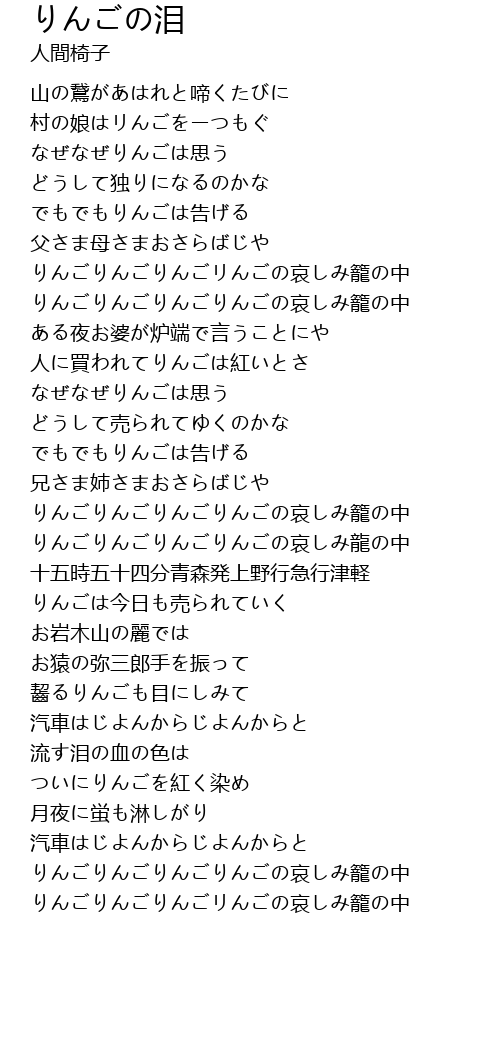 | [03:31.150] | りんごりんごりんごりんごの哀しみ籠の中 |