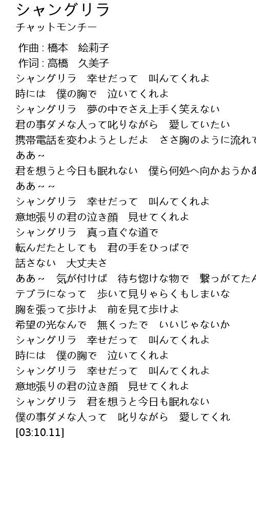 | [02:53.73] | シャングリラ 君を想うと今日も眠れない |