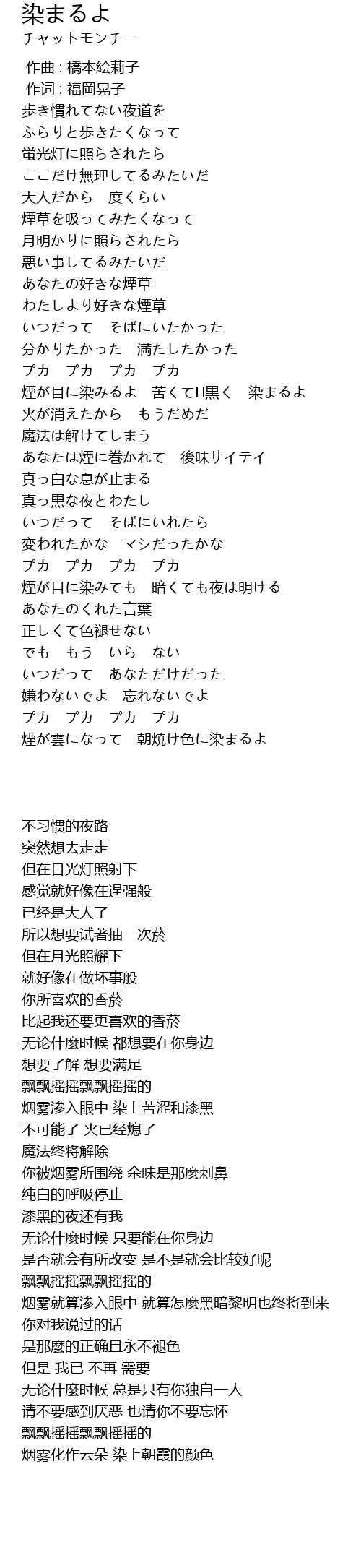| [00:51.33] | 比起我还要更喜欢的香菸 |