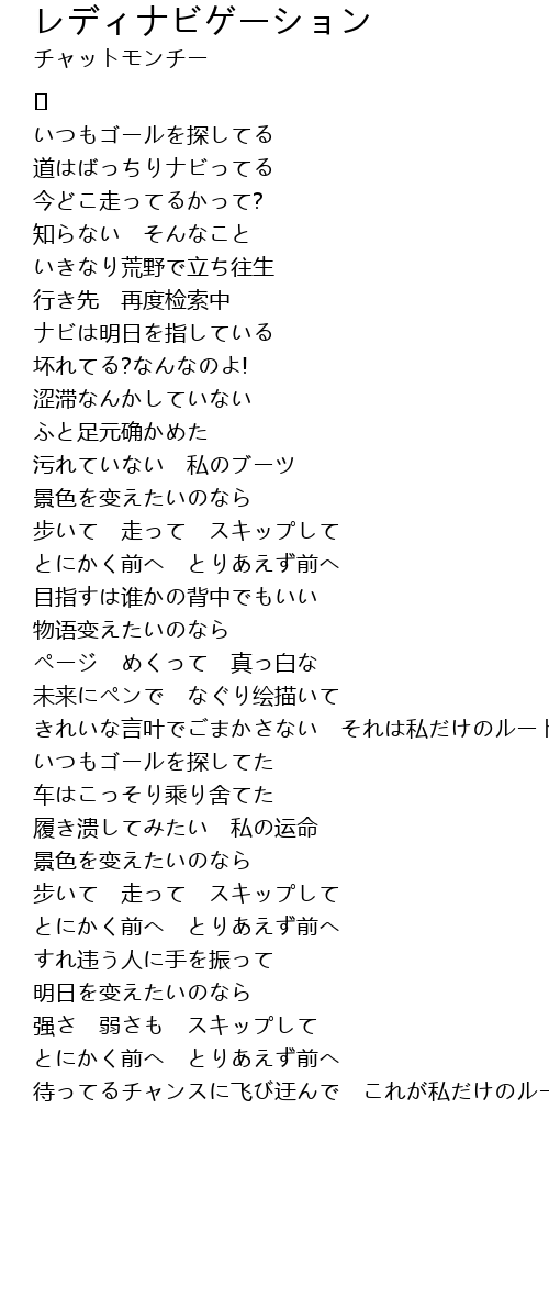 | 待ってるチャンスに飞び迂んで これが私だけのルート |