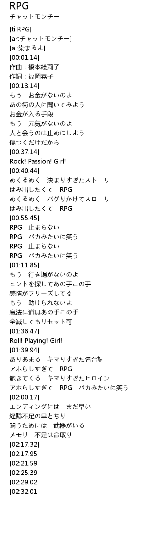 | [02:32.80][02:17.95] | RPG 止まらない |