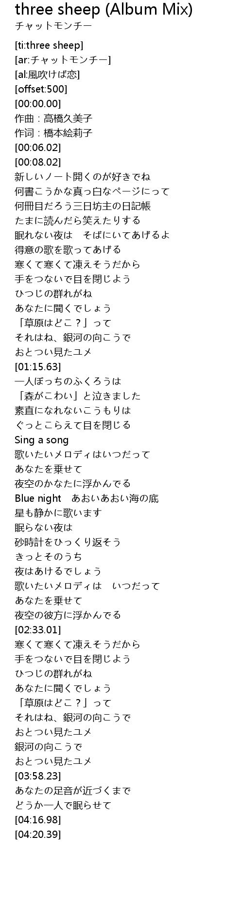 | [02:00.35] | Blue night あおいあおい海の底 |