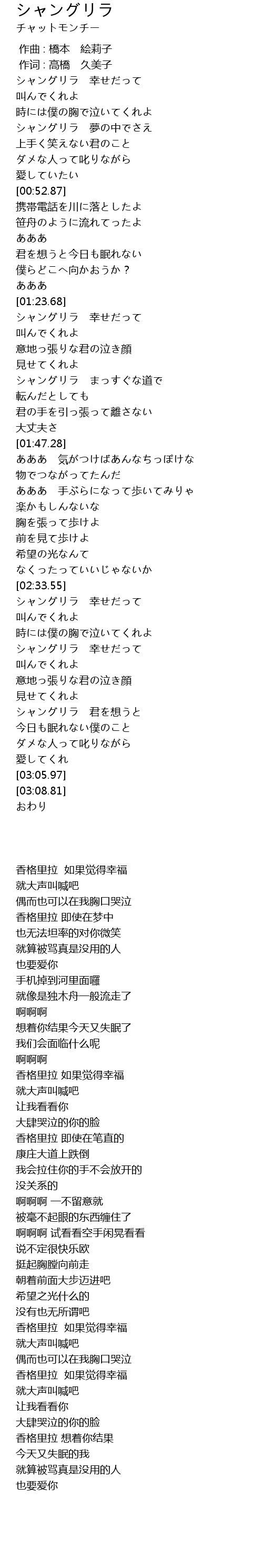 | [01:35.36] | シャングリラ まっすぐな道で |
