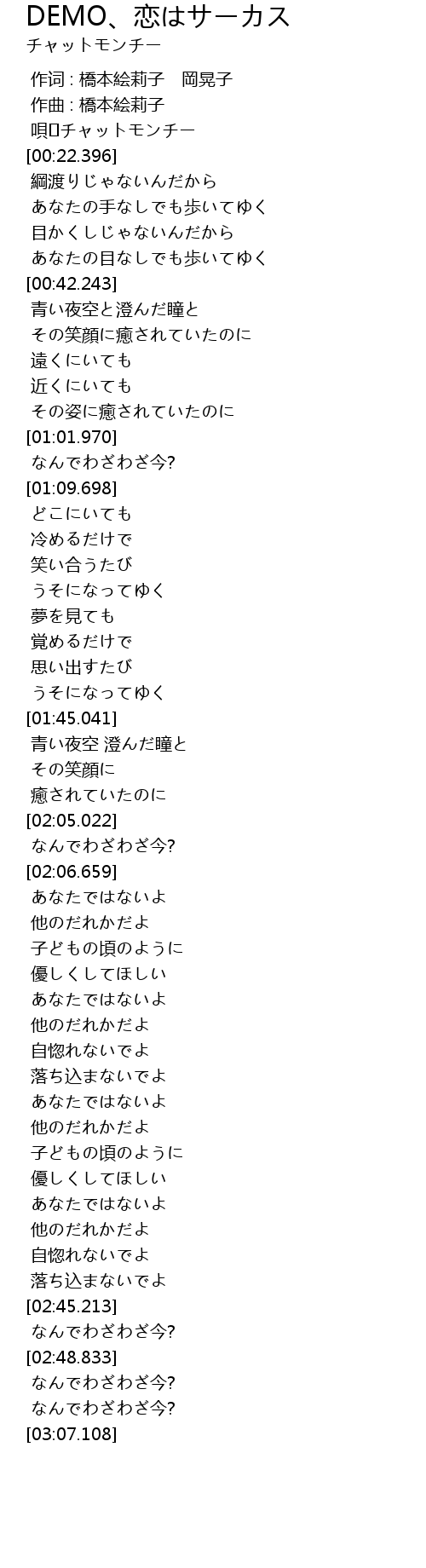 | [00:00.000] | 作词 : 橋本絵莉子 岡晃子 |