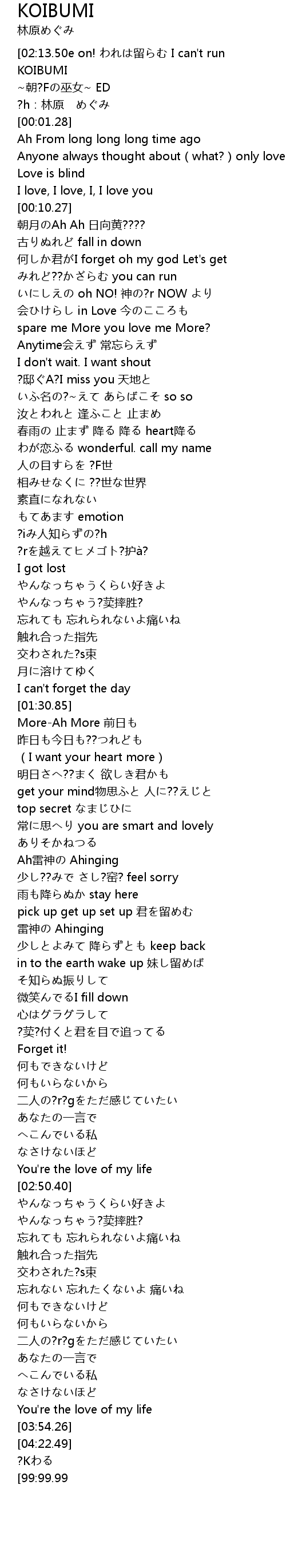 | [00:52.52] | わが恋ふる wonderful. call my name |