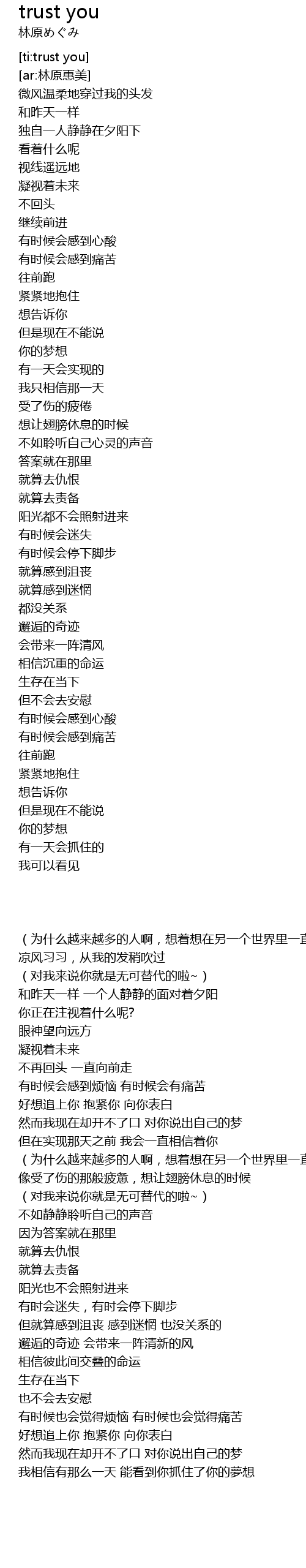 | [02:58.66] | 我相信有那么一天 能看到你抓住了你的夢想 |