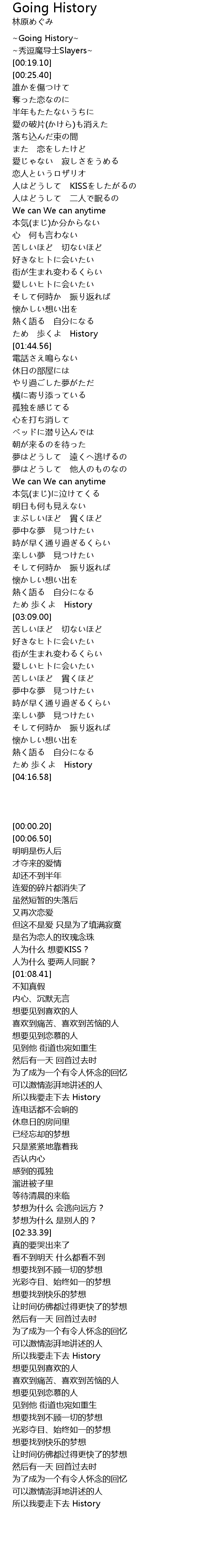 | [00:00.20] | ~Going History~ |