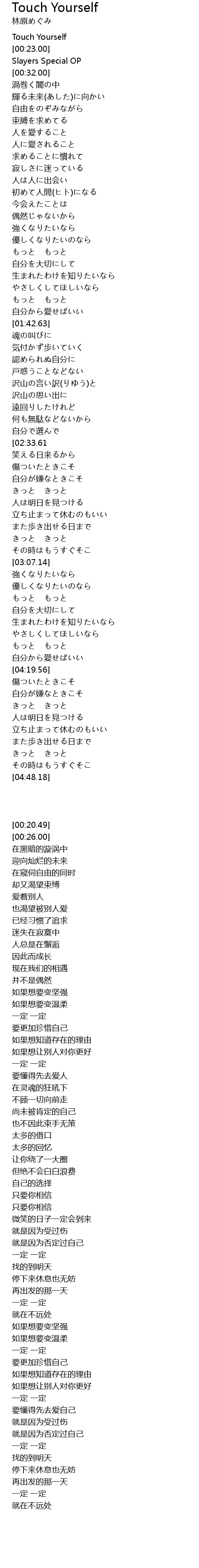 | [02:29.77][02:33.61] | chù hāi zhà wéi zhǎng? xìn |