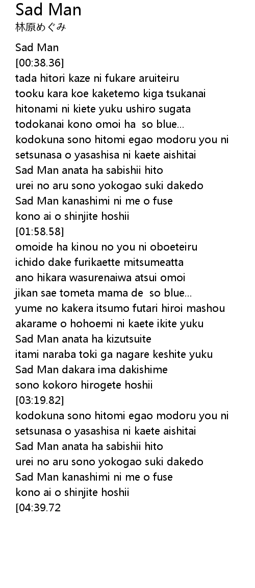 | [04:11.01] | Sad Man anata ha sabishii hito |