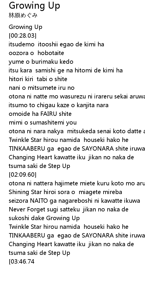 | [00:00.00] | Growing Up |
