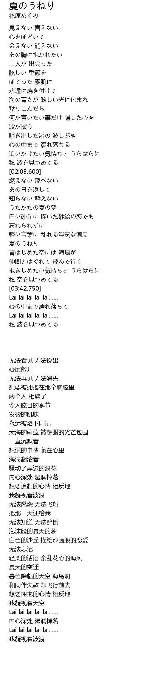 | [03:13.850] | 夏のうねり |