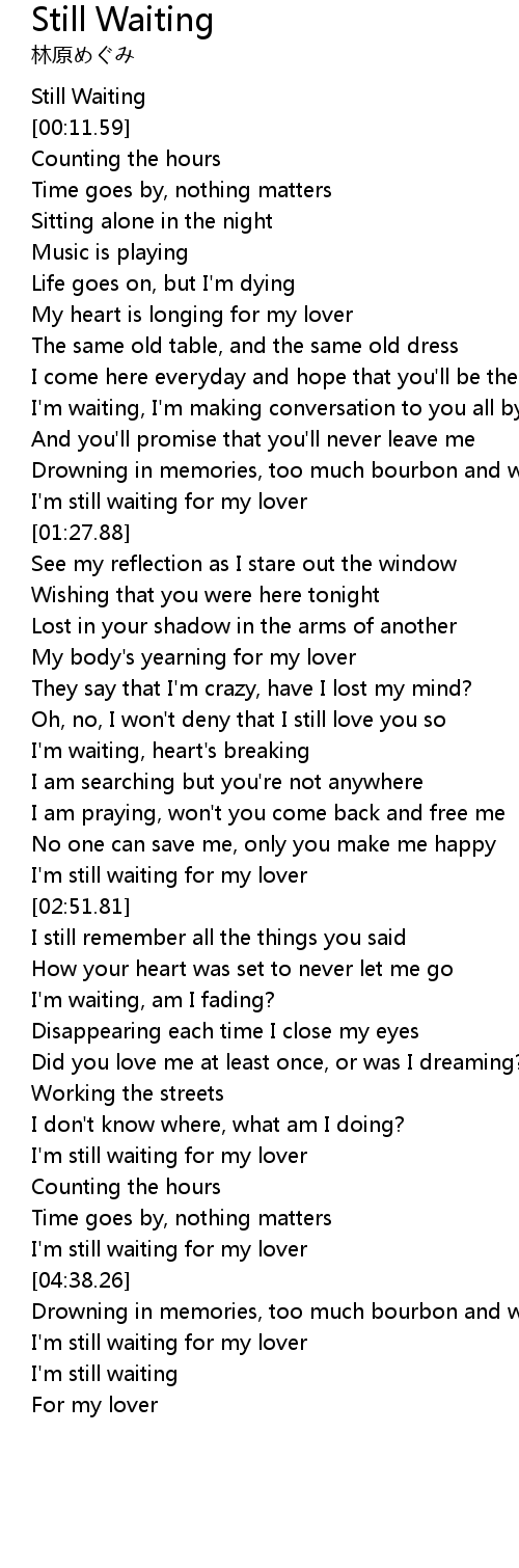| [00:54.47] | I'm waiting, I'm making conversation to you all by myself |