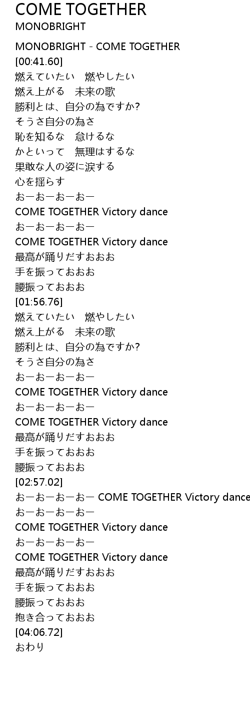 | [00:00.00] | MONOBRIGHT - COME TOGETHER |