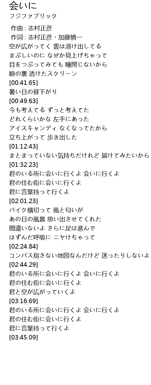 | [01:44.81] | 君の住む街に会いに行くよ |