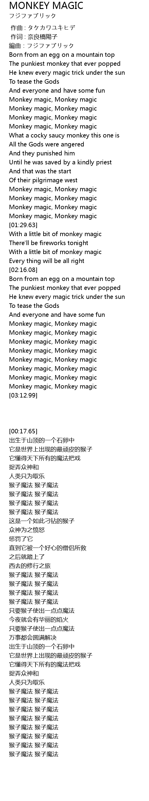 | [00:49.99] | 猴子魔法 猴子魔法 |