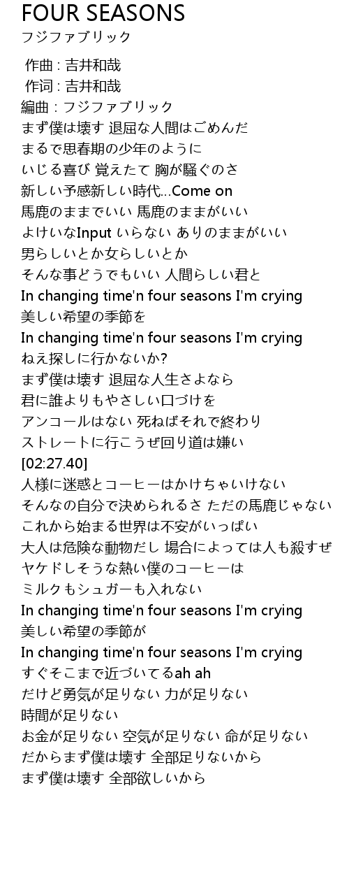 | [03:37.58] | In changing time'n four seasons I'm crying |