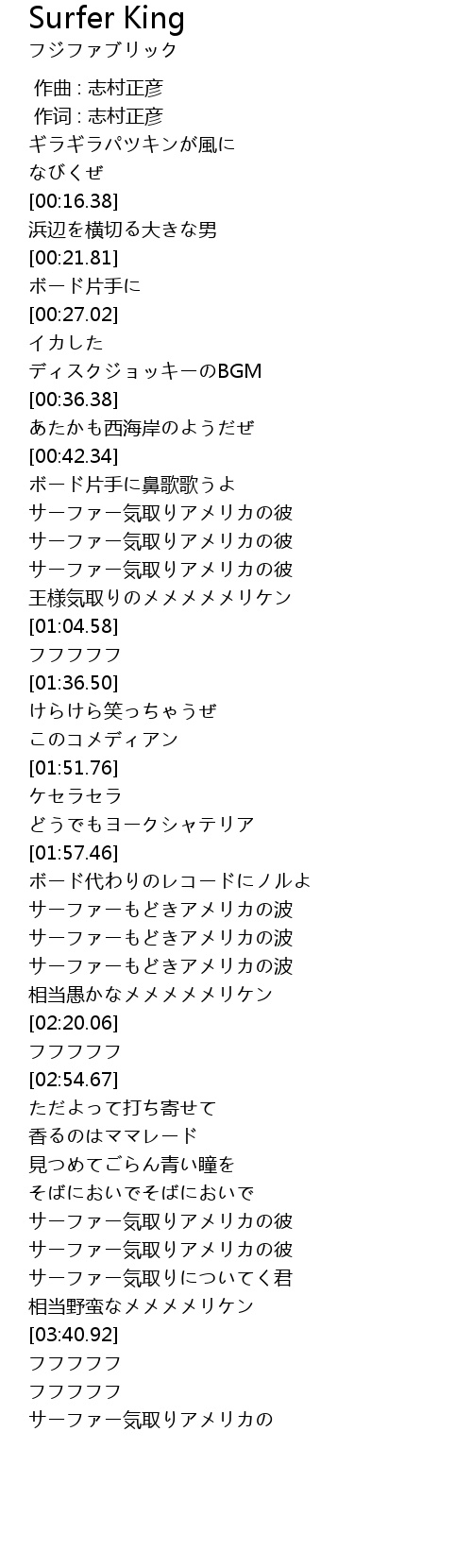 | [02:05.10] | サーファーもどきアメリカの波 |