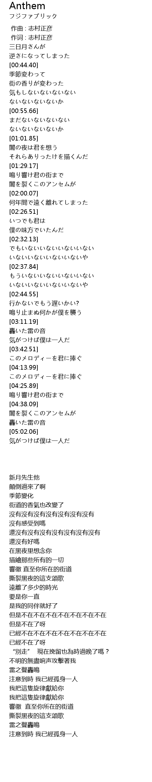 | [00:01.00] | 作词 : 志村正彦 |