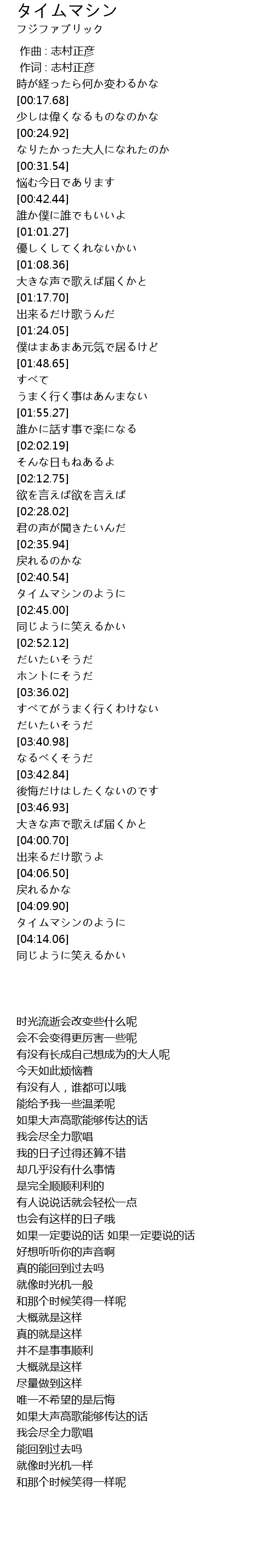 | [00:15.05] | 時が経ったら何か変わるかな |