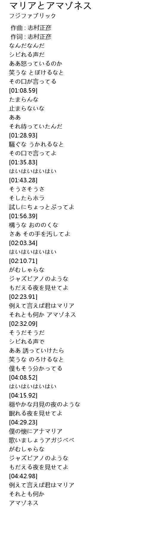 | [00:00.00] | 作曲 : 志村正彦 |